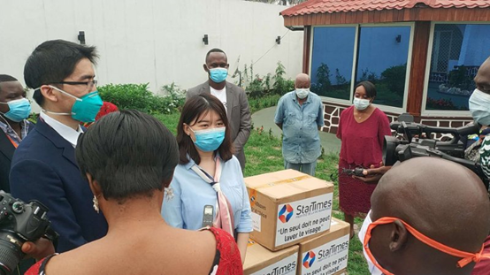 自新冠疫情在非洲爆发以来,当地运营的中资企业在中国使馆的领导下积极通过各类物资捐赠与非洲民众共度时艰。当地时间5月23日,四达时代在中国驻刚果(布)使馆文化秘书代表杨桐的见证下,向刚果(布)第一夫人安托瓦内特-萨苏-恩格索领导的刚果(布)援助基金会捐赠了一批防护口罩。