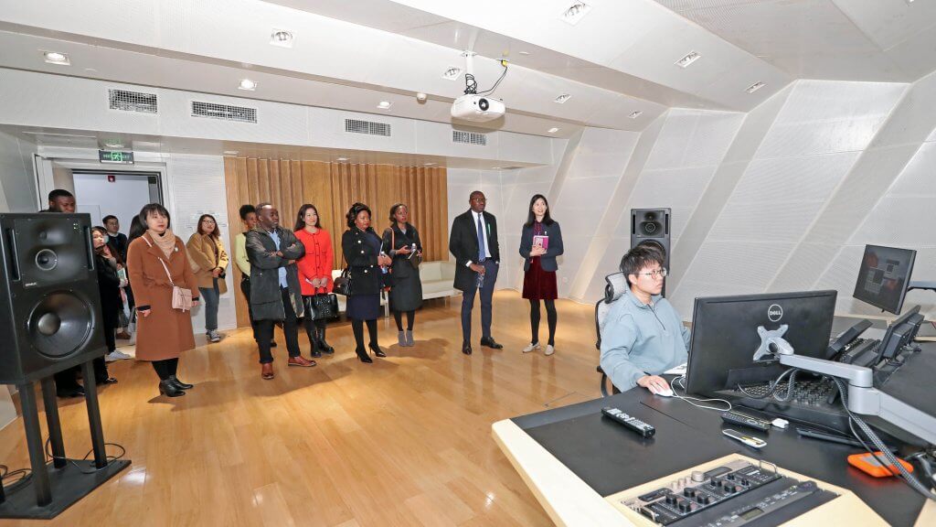 论坛开始前,与会嘉宾一同参观了中国(北京)影视译制基地,与四达时代多位非洲籍配音演员、主持人等进行交流,并观看了“北京优秀影视剧海外展播季•非洲”等视频短片,实地了解中非影视文化交流与传播工作。
