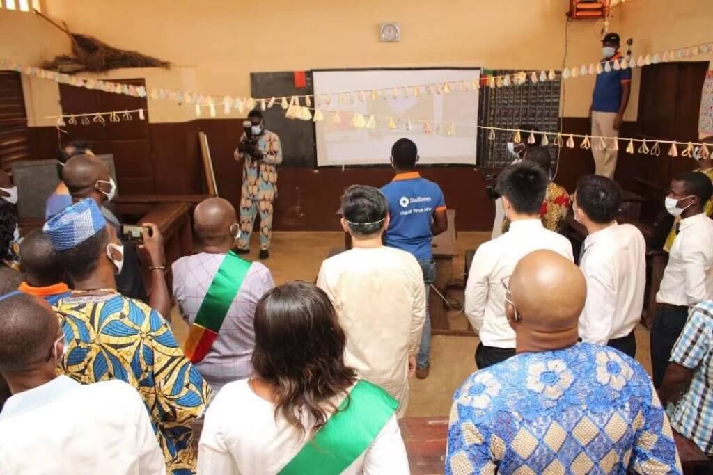 2020-11-24 16:06:00由四达时代承接的中国援非“万村通”项目又迎来一个里程节点:“万村通”贝宁共和国项目交接仪式于当地时间11月20日在贝阿克普罗米塞雷泰市瓦贡村隆重举行。中国驻贝宁大使彭惊涛、经商参赞张伯辉、一秘姚建中、贝宁数字化部办公厅主任萨卡亚鲁、阿克普罗米塞雷泰市市长宏康鑫以及贝宁政府代表、当地政要、媒体代表、四达时代集团代表及当地村民等100余人出席。