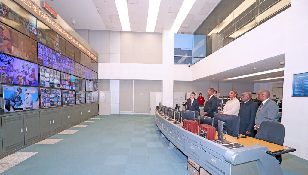 庞新星董事长陪同罗克·席尔瓦·萨穆埃尔总书记一行参观了四达时代的播控中心、演播室、译制配音中心、研究院,为他们详细介绍了四达时代近年来的业务发展情况。